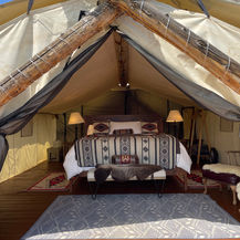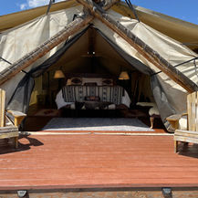 To keep you warm on chilly nights, we provide an electric heated blanket and extra blankets. However, please remember this is still a tent—temperatures can drop at night, so we recommend bringing warm sleepwear and any extra blankets or sleeping bags you might want. Please note that the tents can get warm during the day. Each tent is equipped with a fan to help keep you cool, but it may not fully offset the heat.
